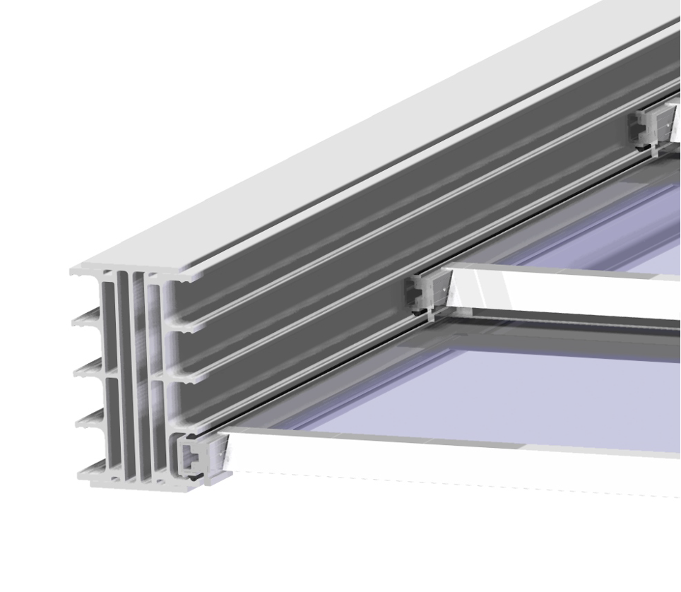 Har du brug for længere spændvidde anvendes 6-spor som indeholder 6 stykker glas i hvert spærfag. Åbner 83%.